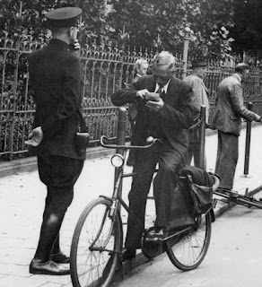 At the same time, eagle-eyed police offers were needed to enforce the tax. They were posted at busy cycling junctions during rush hour and faced an impossible task. Those who didn't cough up the required fee (or the discounted fee on the black market) could simply escape from the police checks by walking the bike, telling the officials to be on his or her way to the post office to pay the tax. The whole thing was just a farce. When the highly effectively organised Nazi powers took charge of the lowlands during WWII, one of the first things they abandoned was this much-hated bike tax. Given the facts that the Nazi regime invented the Autobahn, was promoting driving as the means of transport for the future and actually detested the Dutch cyclists (see again Jordan's book), this was pretty surprising. The Nazis were far too practical to keep something ineffective like this going!