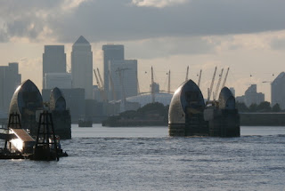From Woolwich, we cycle on the splendid Thames Cycle Route. London’s famous river is tidal here, meaning we can smell the silt of the sea and can catch a refreshing breeze, despite being surrounded by the extensive urban wilderness. We look out over the Thames Barrier before we sit down at the Anchor and Hope, one of the few pubs on this route with outdoor-seating next to the river. Looking eastbound to the City, we can see a dramatic skyline, with high clouds gathering over the O2 Arena (Millenium Dome) and the Canary Wharf business area.