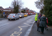 What we are interested in now is what happens outside the school gates. Are the roads next to the Dutch school suddenly filling up with cars, such as in this typical picture of the UK on the right? Do we hear engine noises and slamming car doors taking over? Do we see parents parking illegally on yellow lines, making erratic moves with their cars? Do we see a crossing patrol person plastered in high-visibility yellow turning up trying to keep order in this car mayhem?