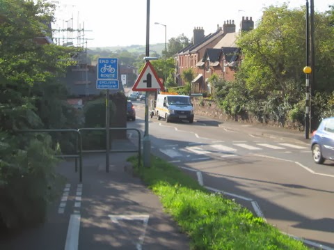 So, that is why UK highway officials also came up with the rule that on their cycle paths, cyclists always have to give way to pedestrians. I don't intend to infringe on the rights of pedestrians, but the fact is that these "British Style" paths cannot be classed as true cycle paths "Dutch" sense. On a UK cycle path you can often only cycle at walking speed, so is it really a cycle path then? I don't think so.
