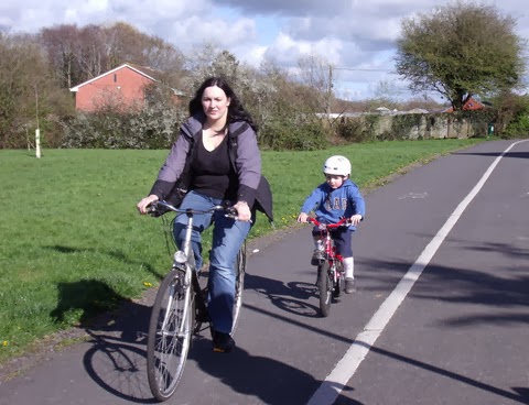 A Cycle path is an off-road cycling facility, away from the road. In Britain, these are always shared paths, often pavements, to be shared with pedestrians. Sometimes, these are also called "segregated shared paths" if a white line on the tarmac has been put in to separate cyclists from pedestrians. Have you ever seen this work? No! Pedestrians are all over the place and so are the cyclists.
